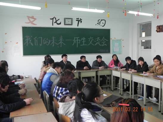 会议围绕学生在校生活中遇到的各种问题及其解决方式展开,学生代表畅所欲言,针对英语学习的方法、就业前景及考研的方向提出了很多实质性问题,同时,各位与会老师一一对学生提出的问题做了详细的解答,让各位同学在今后的学习生活中明确了方向。