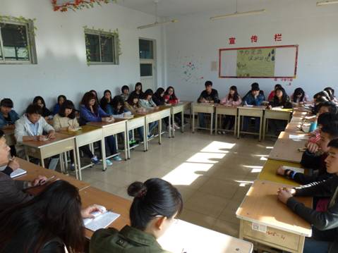 为了认真贯彻落实教育思想观念大讨论活动,培育和践行社会主义核心价值观,5月9日下午,商务英语系在实验楼222召开学生教育思想观念讨论会,系党总支书记鲍震、全体辅导员及部分学生代表参加了讨论,讨论会由系团总支书记谭颖主持。