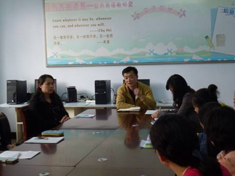教师们特别重视如何提高课堂活力的问题。课堂缺乏活力主要是由于课堂教学内容和教学方法不能吸引学生,如何提高学生课堂上的抬头率是每个教师都应该认真反思的问题。通过讨论,教师们认为提高课堂活力主要应做好以下几个方面的工作。一是充分备课,将教学内容和相关知识点融会贯通,熟记于心。二是将知识性与趣味性相结合,避免枯燥,教学内容要以鲜活的方式体现出来,提高学生的学习兴趣。比如通过多媒体、单词联想记忆、情景设置,预先任务设置等方式开展教学活动。三是安排好教学的各个环节,掌握好节奏。教师既是演员也是导演,教学要根据课堂情况进行适时调整和评价。四是教师上课应精神饱满、充满热情,用教师积极乐观的态度影响和带动学生。五是教学条件方面,我院英语教学没有全面实现真正的小班授课,而小班授课对学生语言技能的训练和培养更有利。