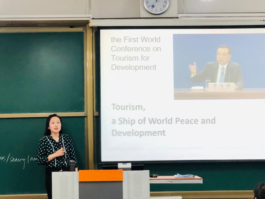 李杨(小)老师的课程非常出色,她将雨课堂的教学手段融入课堂教学中,用精彩的课前Presentation拉开了课堂的序幕,并使用投票功能进行了与本节课内容相关的旅游方面的调查,在整个文章的讲解中,脉络清晰,以循循善诱、不断设置问答、提示将文章的整体结构分析的条理清楚,学生参与度高,课堂气氛活跃,将南京培训的内容应用在自身教学之中,让大家意犹未尽,真正展现了大学英语课程的精彩。