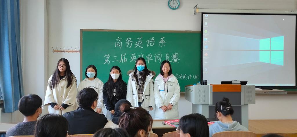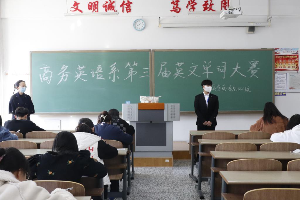 2021级商务英语1-5班于第九教学周开展了商务英语系第三届英文单词竞赛初赛选拔,于2021年10月27日下午1:40在综合楼111教室成功举办了复赛。