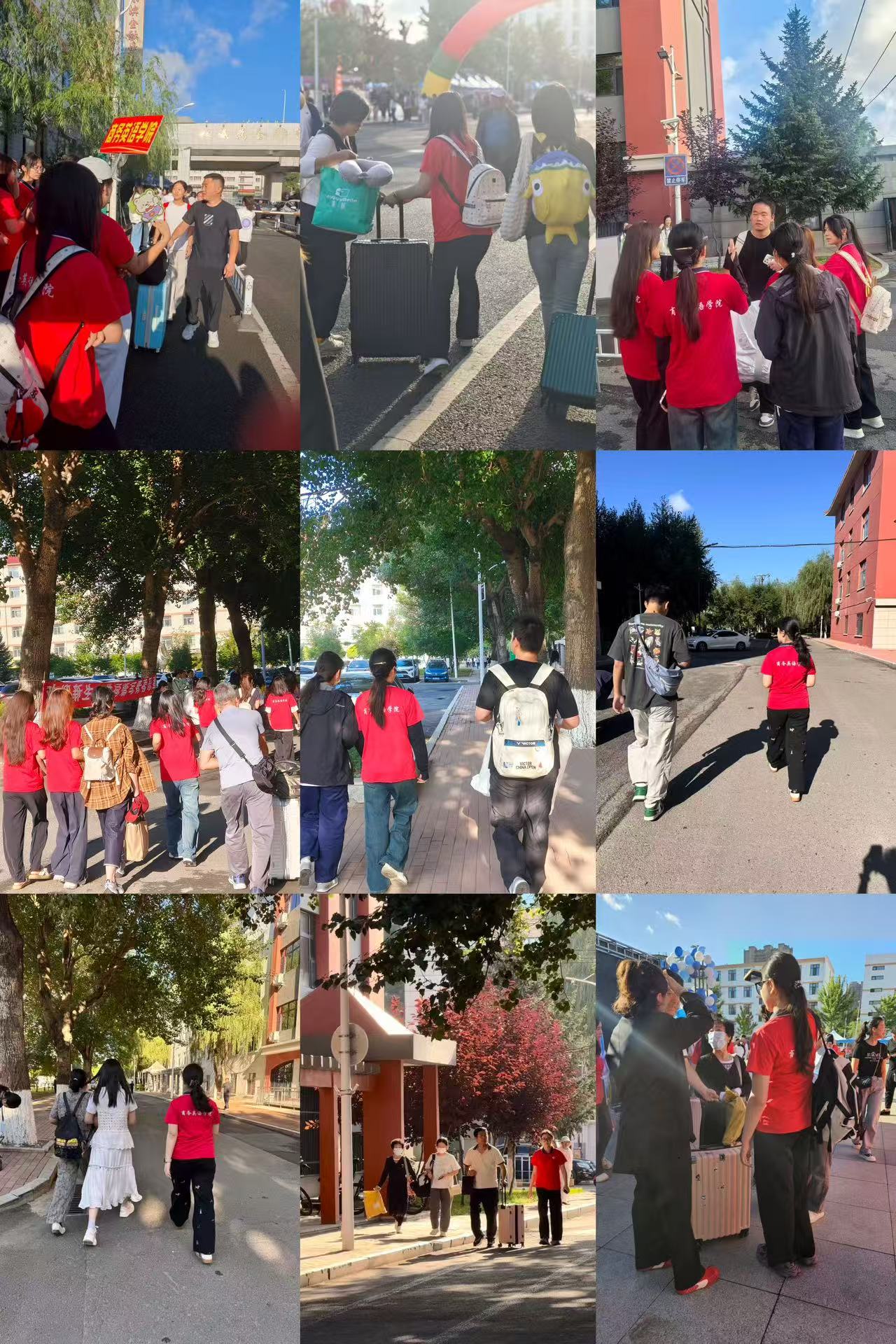 志愿者们全程贴心陪伴,接待站的同学们耐心解答问题、协助办理报到手续;引导组的同学从校门到寝室,一路指引、介绍校园、提运行李,用细致服务传递商英学子的热情与善意。