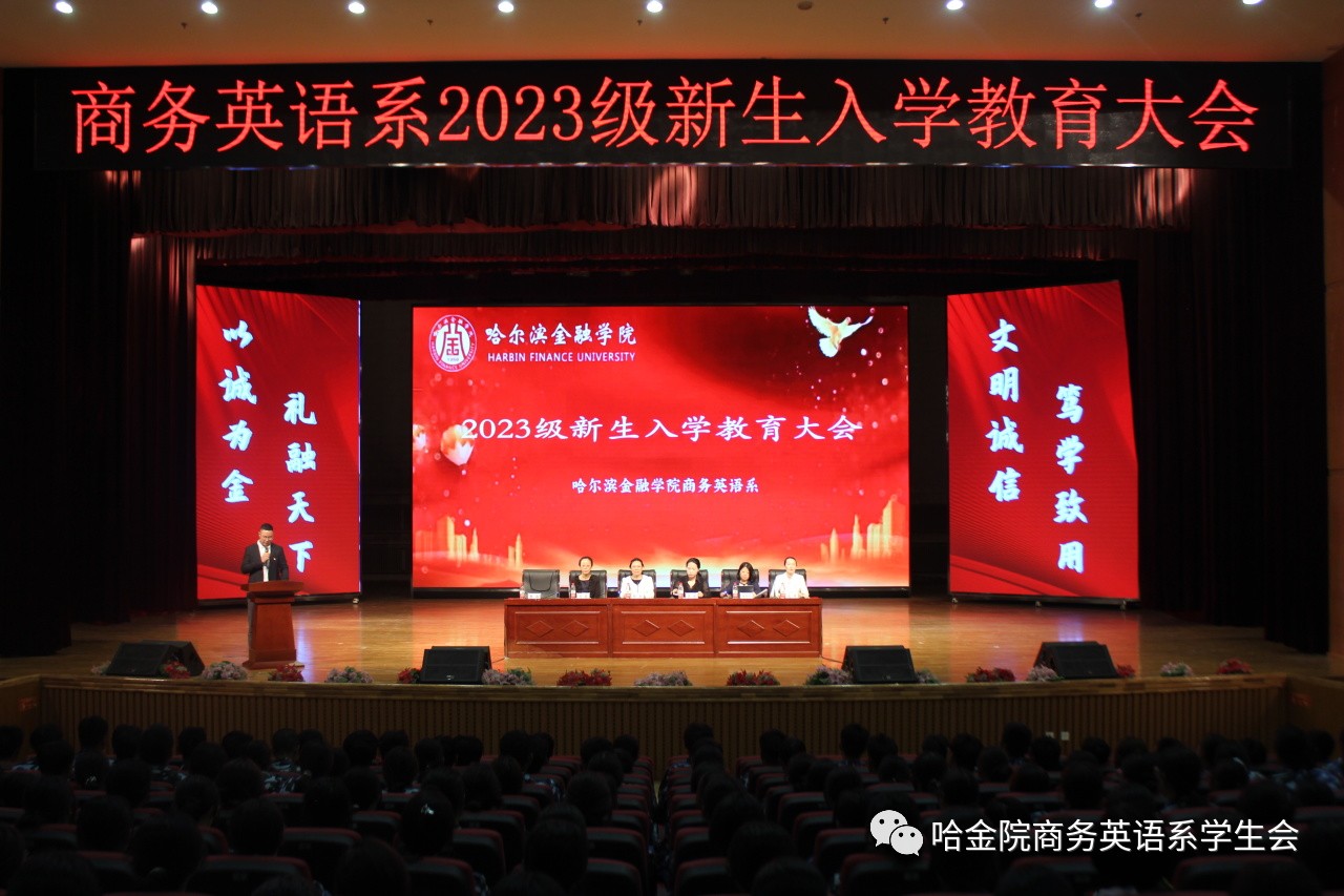 按照学院《迎新工作方案》具体要求,为引导2023级新生尽快适应新生活、树立人生目标、明确校规校纪、以最佳状态投入求学新航程,哈尔滨金融学院商务英语系于9月15日上午在金苑礼堂举办2023级新生入学教育大会暨开学第一课。商务英语系党总支书记、主任于瑶、党总支副书记殷君、金融英语教研室主任、专业带头人李玲玲、商务英语教研室主任刘磊、团总支副书记赵健、2023级辅导员李焱出席会议,全体2023级新生参加会议。会议由2023级新生辅导员李焱老师主持。