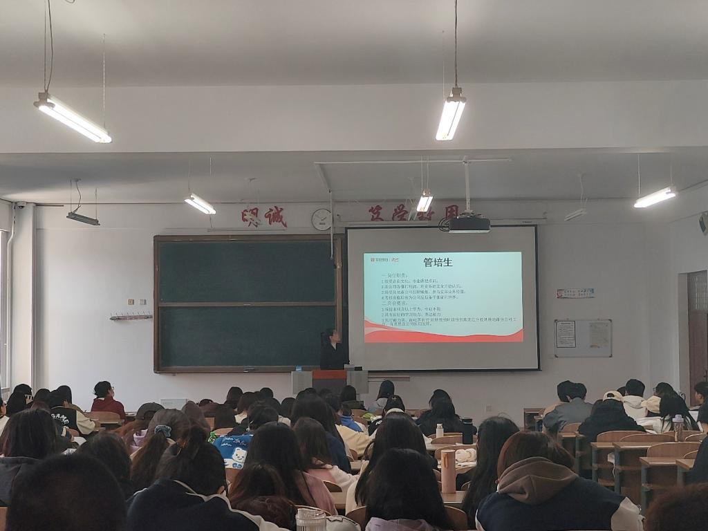 2023年10月11日下午13点30分,华图教育学校专场招聘会在综合楼223教室进行,商务英语系2024届毕业生全体学生参加宣讲招聘会。