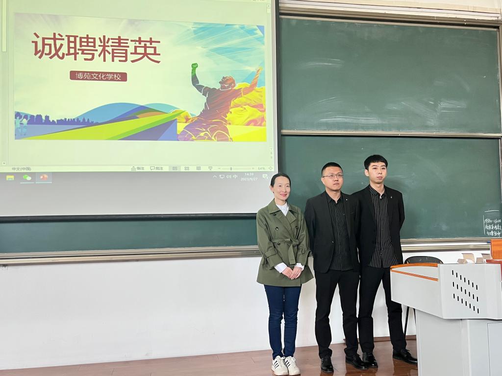 2023年9月27日下午14点30分,博苑文化学校专场招聘会在实验楼337教室进行,商务英语系2024届毕业生中部分学生参加宣讲招聘会。