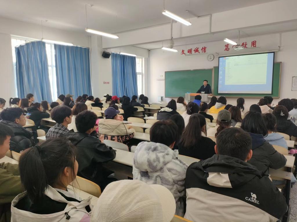 2023年11月1日12时40分,牡丹江市丰达化工进出口有限责任公司专场招聘会在综合楼105教室进行,商务英语系2024届毕业生参加宣讲招聘会。