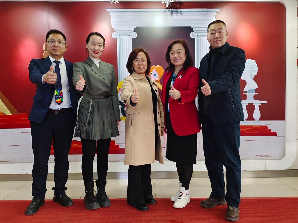 天童教育集团潘春荣校长热情接待商务英语学院一行,邀请现场观看集团宣传片。副书记李娜介绍了学院办学理念、专业设置、培养方案及学生就业等情况,与潘校长就岗位需求、薪资待遇等进行了交流,并现场推荐1名2024届毕业生。