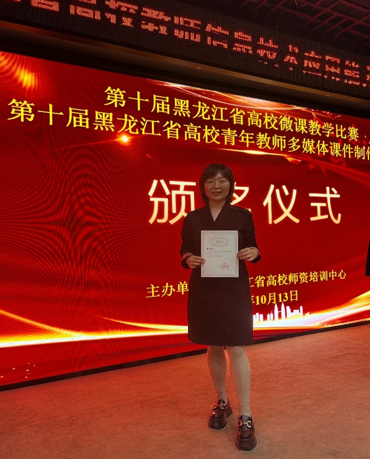 10月12日至13日,我系杨雪芳老师作为第十届黑龙江省微课教学比赛一等奖获奖选手,参加了第六期黑龙江省高校教师信息技术应用能力提升专题培训班。本次培训班由黑龙江省高校师资培训中心主办,旨在提升高校教师对于新兴信息技术的应用能力,进一步推动黑龙江省高等教育教学的创新与发展。