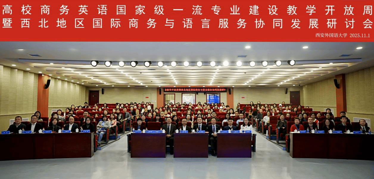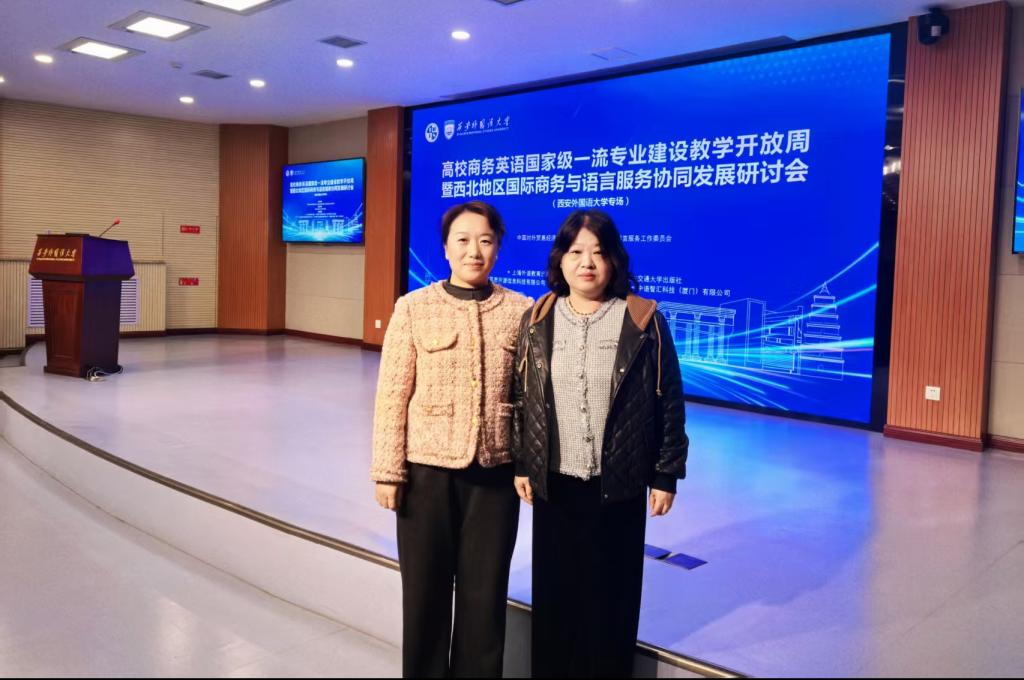 10月31日-11月2日,由中国对外贸易经济合作企业协会国际商务与语言服务工作委员会主办、西安外国语大学英文学院承办的“高校商务英语国家级一流专业建设教学开放周暨西北地区国际商务与语言服务协同发展研讨会”在西安外国语大学举办。本次会议以“数智赋能·模式创新·融合发展:新文科背景下的商务英语一流专业建设”为主题,来自全国多所高校的商务英语专业负责人、骨干教师及行业专家齐聚一堂,共同探讨新文科背景下商务英语一流专业建设的创新路径与发展模式。商务英语学院李玲玲副院长、常超老师参会。