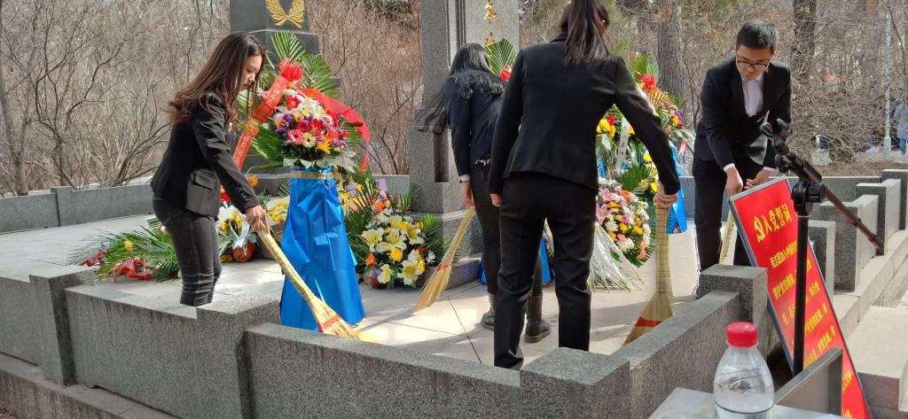 清明节为缅怀革命先烈,弘扬爱国主义精神,商务英语系于4月3日下午,由副处级辅导员谭颖及辅导员赵健带领学生干部,一行45人前往哈尔滨烈士陵园开展了清明节祭扫烈士墓活动。
