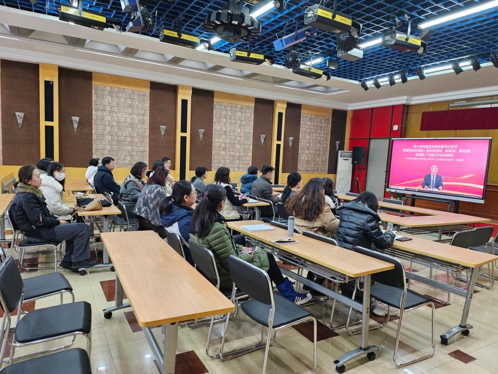 为深入学习习近平总书记关于教育的重要论述和重要指示精神,坚定拥护“两个确立”,增强“四个意识”,坚定“四个自信”,做到“两个维护”,切实增强全面推进教育强国建设的责任感、使命感、紧迫感,2024年11月27日,商务英语学院党总支组织全体教职工开展政治理论集中学习,党总支书记顾广强主持学习活动。