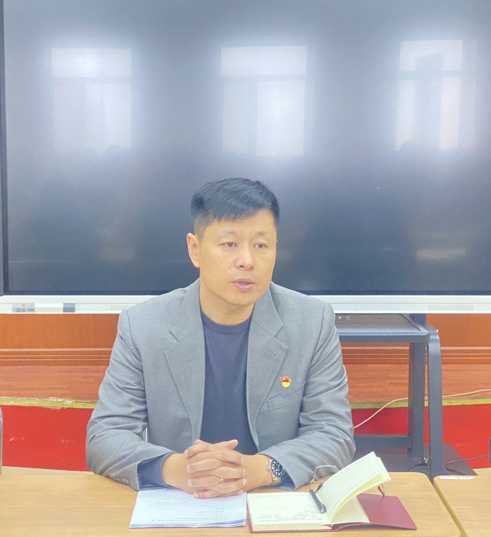 为深入学习习近平总书记关于教育的重要论述和重要指示精神,坚定拥护“两个确立”,增强“四个意识”,坚定“四个自信”,做到“两个维护”,切实增强全面推进教育强国建设的责任感、使命感、紧迫感,3月26日,商务英语学院党总支组织全体教职工开展政治理论集中学习,党总支书记顾广强主持学习活动。