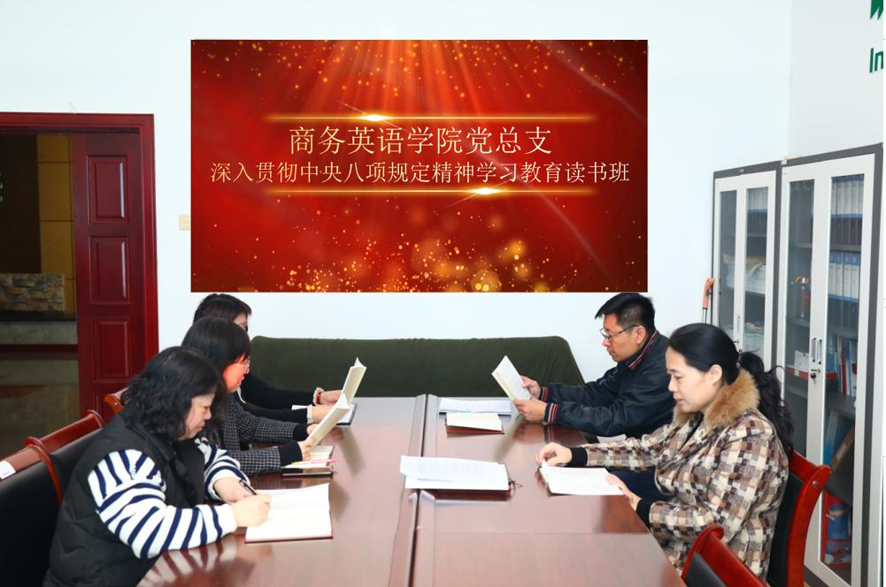 按照学校党委的统一安排,4月1日—4月3日,商务英语学院党总支开展了深入贯彻中央八项规定精神学习教育专题读书班,党总支班子5名成员全部参加了集中学习。