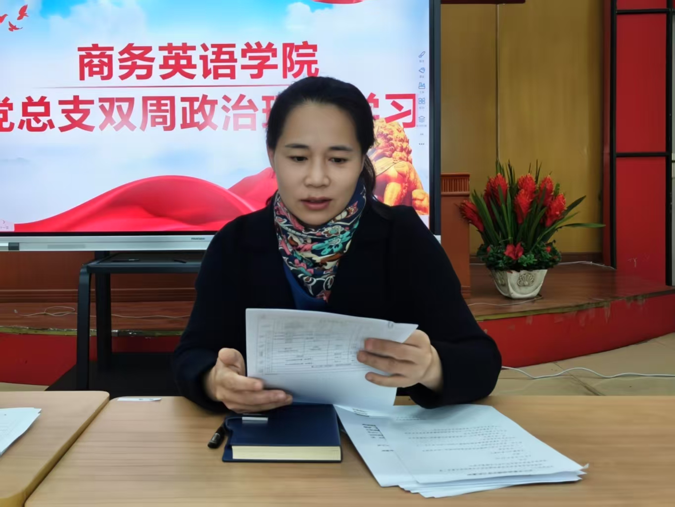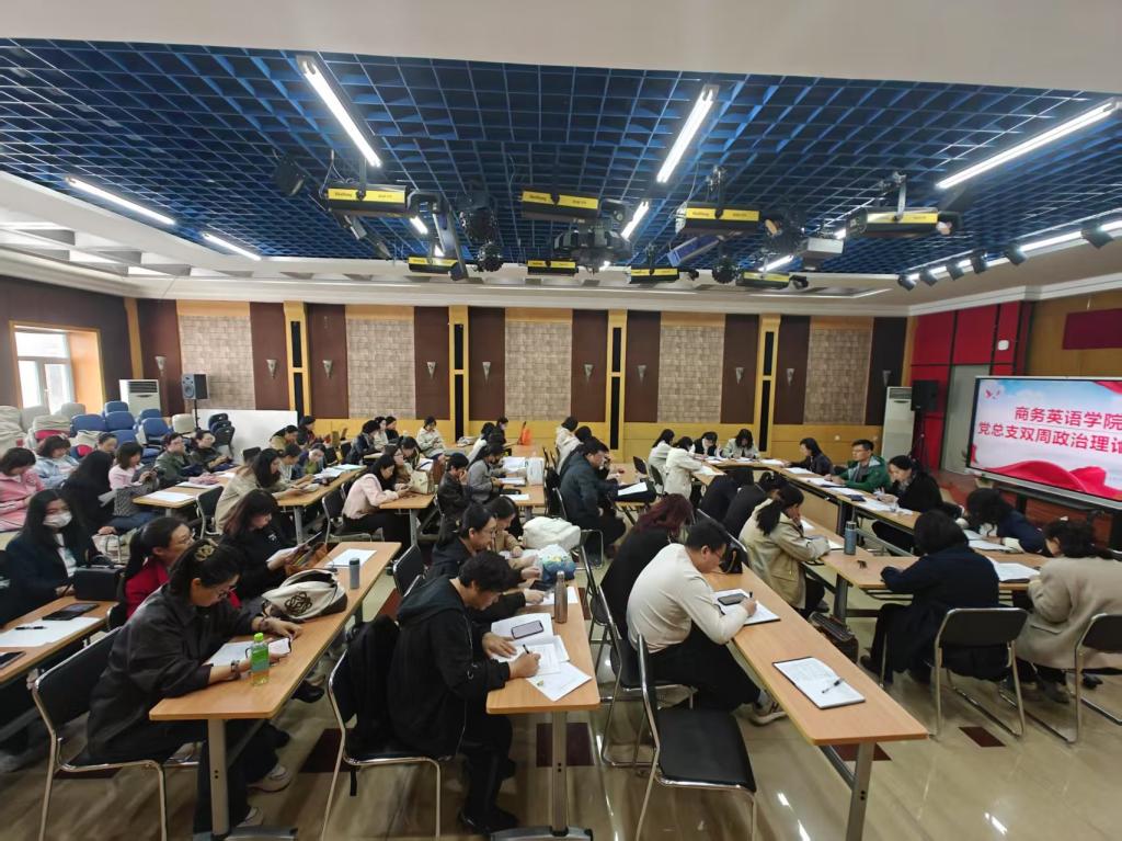 为深入学习习近平新时代中国特色社会主义思想,深刻领悟“两个确立”的决定性意义,增强“四个意识”、坚定“四个自信”、做到“两个维护”,深入开展贯彻中央八项规定精神学习教育,切实增强全面推进教育强国建设的责任感、使命感、紧迫感,4月23日,商务英语学院党总支组织全体教职工开展政治理论集中学习,党总支书记顾广强主持学习活动。