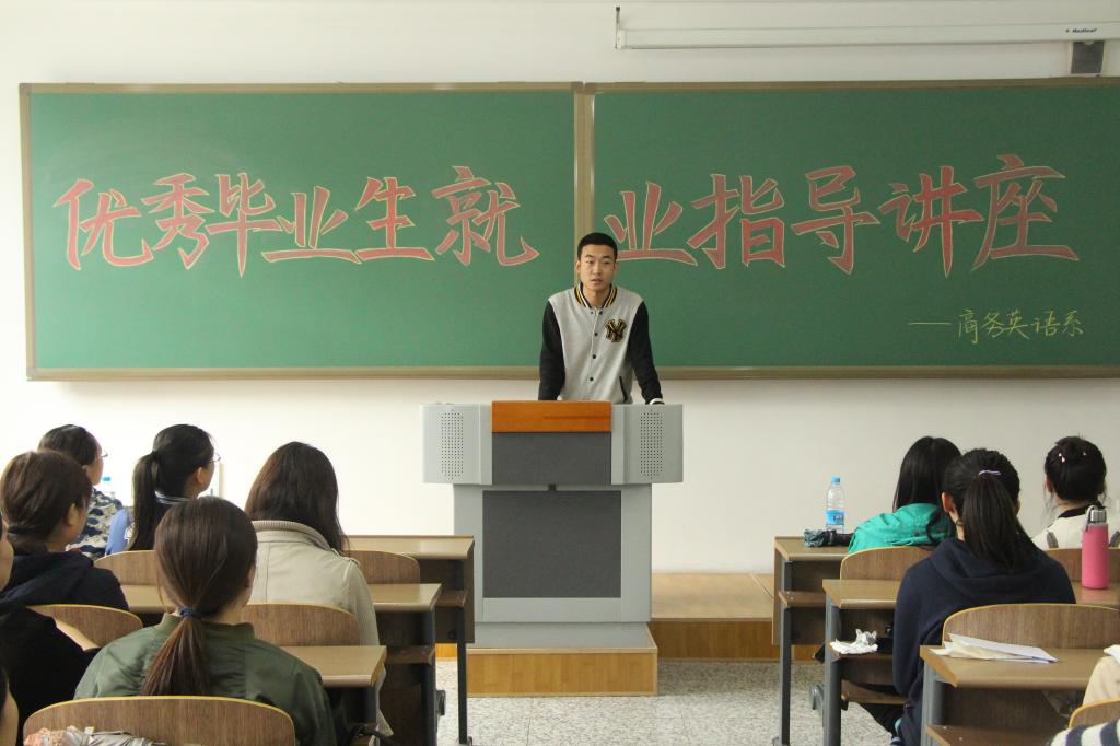 为做好我系2017届毕业生的就业准备工作,丰富学生应聘知识,指导学生在应聘过程中正确面对自己,明确目标,端正态度。2016年5月12日中午,商务英语系就业指导中心在新教107教室举办了“优秀毕业生就业指导大会”。