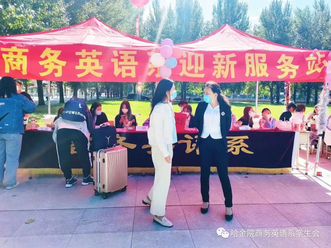 秋日的金院,惠风和畅,天澄水澈,哈尔滨金融学院商务英语系敞开怀抱迎接2022级本科生新同学,他们将与这座金融学府共同成长展开人生的崭新画卷。金院到处洋溢着青春的气息 展板、道旗、条幅向来自五湖四海的同学们致以最诚挚的问候。晨曦初露,商务英语系党总支副书记殷君、辅导员老师们在迎新服务站点热情欢迎同学们的到来,为新生送上来自商英系的第一份温暖。学生志愿者们搭起展架,理齐物料,做好充分准备。翘首期待着2022级本科生萌新们的到来。