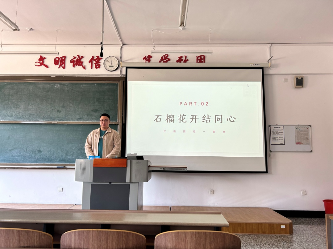为引导学生铸牢中华民族共同体意识,全体辅导员召开了以“石榴花开结同心,携手共筑中国梦”为主题的铸牢中华民族共同体意识班会,向同学们阐述了民族团结的重要性,要求大家将民族团结思想与日常学习生活紧密结合,用实际行动维护民族团结,共同建设美好校园。