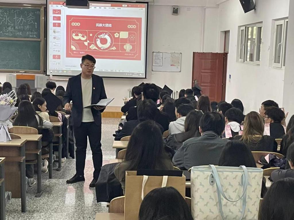 为加强学生对民族宗教政策的理解和认识,在新生入学教育大会上,党总支副书记李娜组织开展了“民族宗教知识理论学习”主题活动,向2024级学生详细介绍了民族宗教政策法规的重要内容,加深了同学们对民族宗教知识的理解。